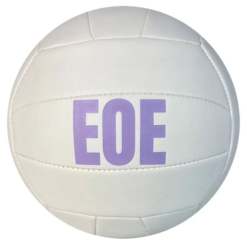 Serve your identity with every spike. This custom indoor volleyball features a clean white panel design with stitched seams for optimal control and durability. The bold purple “EOE” branding adds a signature touch, making it perfect for team uniforms, branded events, or personalized gifts.